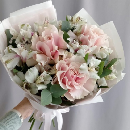 Букет из 3 французских роз и Альстромерии в Оренбурге