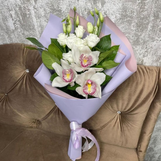 Букет из орхидей и эустомы в Оренбурге