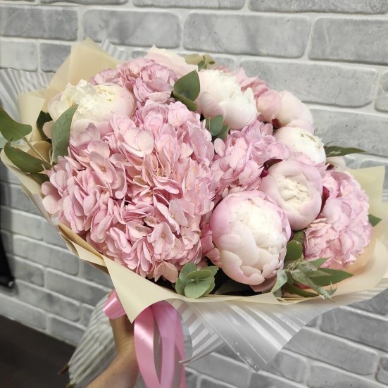 Букет «Пионы и гортензии» в Оренбурге
