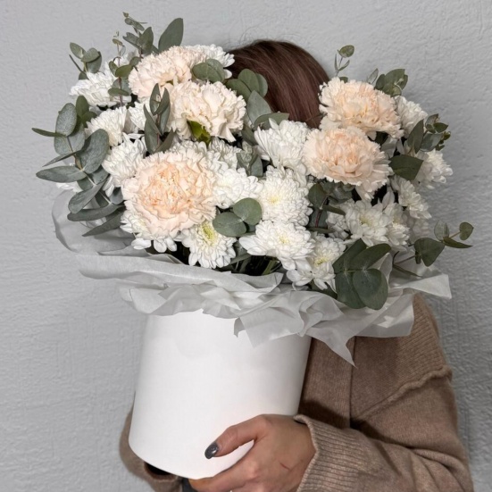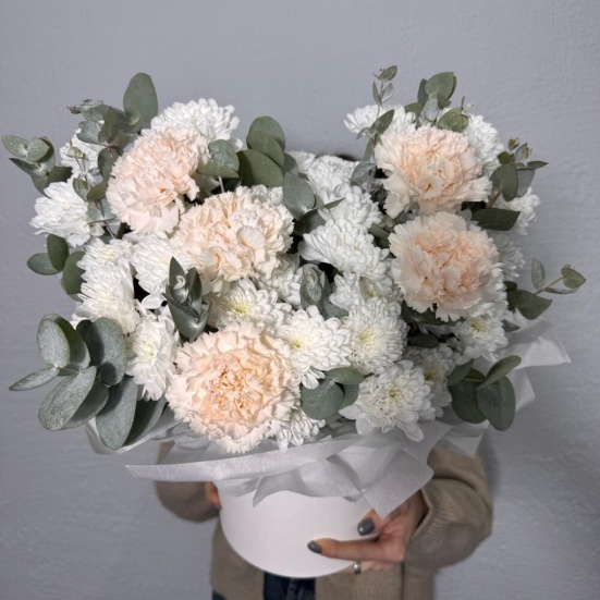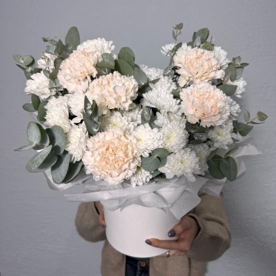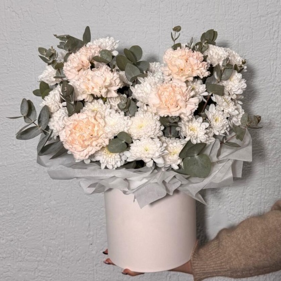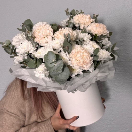Коробка из кустовых хризантем и диантуса в Оренбурге